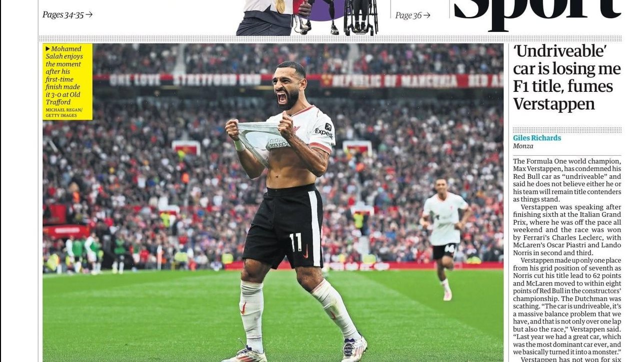 شارك المصري محمد صلاح في مباراة فريقه ليفربول أمام مانشستر يونايتد ببطولة الدوري الإنجليزي الممتاز، أمس الأحد، والتي فاز بها الريدز على نظيره مانشستر يونايتد بنتيجة 3/0، خلال المباراة التي جمعت الفريقين على ملعب "أولد ترافورد".