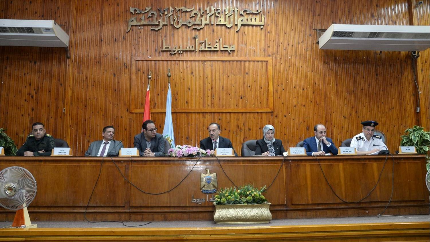 جاء ذلك بحضور الدكتور مينا عماد نائب المحافظ والمهندسة فاطمة أحمد إبراهيم سكرتير عام المحافظة والمحاسب عدلي أبوعقيل سكرتير عام مساعد المحافظة والمهندس محمود صبحي وكيل وزارة الزراعة وجميع رؤساء المراكز والأحياء بنطاق المحافظة.