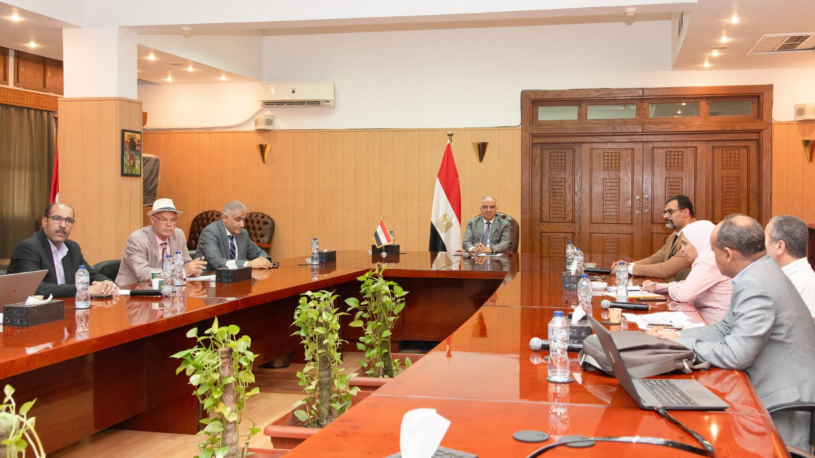 عقد الدكتور هانى سويلم وزير الموارد المائية والري اجتماعاً لمتابعة موقف جاهزية مخرات السيول ومنشآت الحماية من اخطار السيول للتعامل مع موسم الأمطار الغزيرة والسيول .