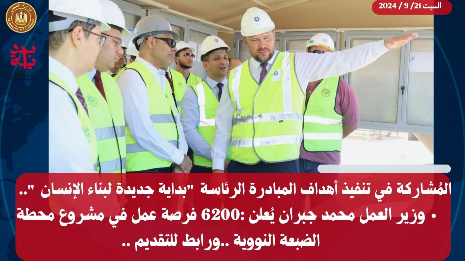 في آخر إعلان لها، أعلنت وزارة العمل عن توفير 6200 فرصة عمل للشباب المصري في تخصصات متنوعة داخل مشروع الضبعة النووية بمحافظة مرسى مطروح.