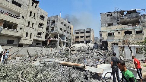 وأشارت وسائل الإعلام الفلسطينية، إلى وقوع إصابات في قصف طائرات الاحتلال المروحية مدرسة خالد بن الوليد التي تؤوي نازحين شرق مخيم النصيرات وسط القطاع.