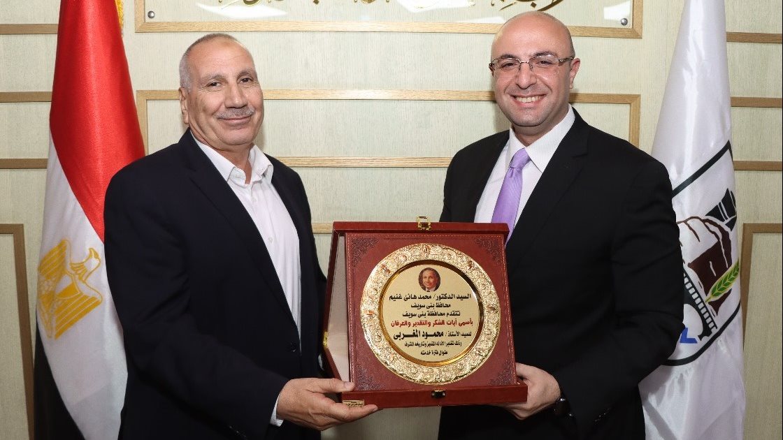 وأشاد البعض بفكر محافظ بني سويف ، حيث علموا أنه وجه بتصميم تمثال لأحد أعلام المحافظة الإمام البوصيري لترسيخ مفهوم الانتماء وإعلام الأجيال القادمة بالقيمة التاريخية لمحافظتهم التي تعتبر جزء عزيز من الوطن الغالي مصر ، حيث أن اختيار تمثال الإمام البوصيرى كان موفقا ، لما للرجل من مكانة أدبية كبيرة والذي ولد في قرية أبوصير الملق في الأول من شوال 608 هـ الموافق 7 مارس 1213 م ، وهو صاحب قصيدة البردة التي تعد من أعظم قصائد المدح النبوى في التاريخ،والتي قد أجمع عليها معظم الباحثين على أن هذه القصيدة من أفضل وأعجب قصائد المديح النبوي إن لم تكن أفضلها، حتى قيل: إنها أشهر قصيدة مدح في الشعر العربي بين العامة والخاصة ، وقد انتشرت هذه القصيدة انتشارًا واسعًا في البلاد الإسلامية، يقرأها بعض المسلمين في معظم بلاد الإسلام كل ليلة جمعة ، وأقاموا لها مجالس عرفت بـ مجالس البردة الشريفة.