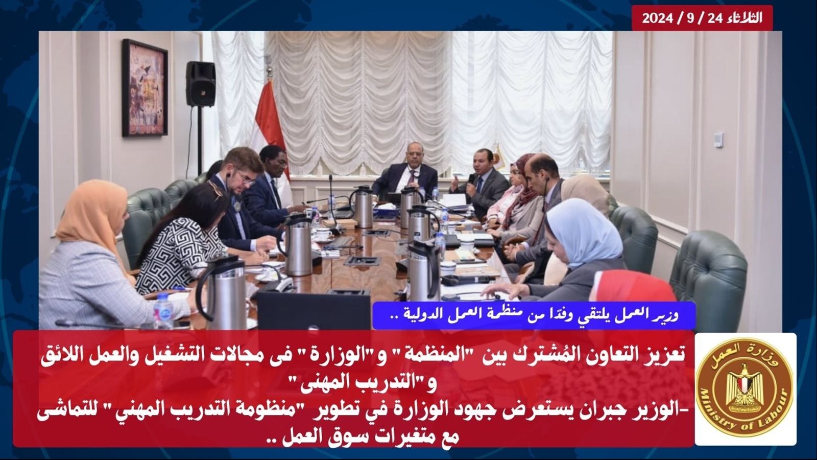 استقبل وزير العمل محمد جبران، اليوم الثلاثاء، بمقر الوزارة بالعاصمة الإدارية الجديدة، مايكل مواسيكاكاتا، رئيس وحدة خدمات سوق العمل للتحولات بمنظمة العمل الدولية في جنيف، ووفد من مكتب منظمة العمل الدولية بالقاهرة، لبحث سُبل تعزيز التعاون المُشترك بين "المنظمة" و"الوزارة" فى مجالات التشغيل والعمل اللائق والتدريب المهنى للشباب من الجنسين، وتأهيلهم وفقاً لمتطلبات سوق العمل في الداخل والخارج.