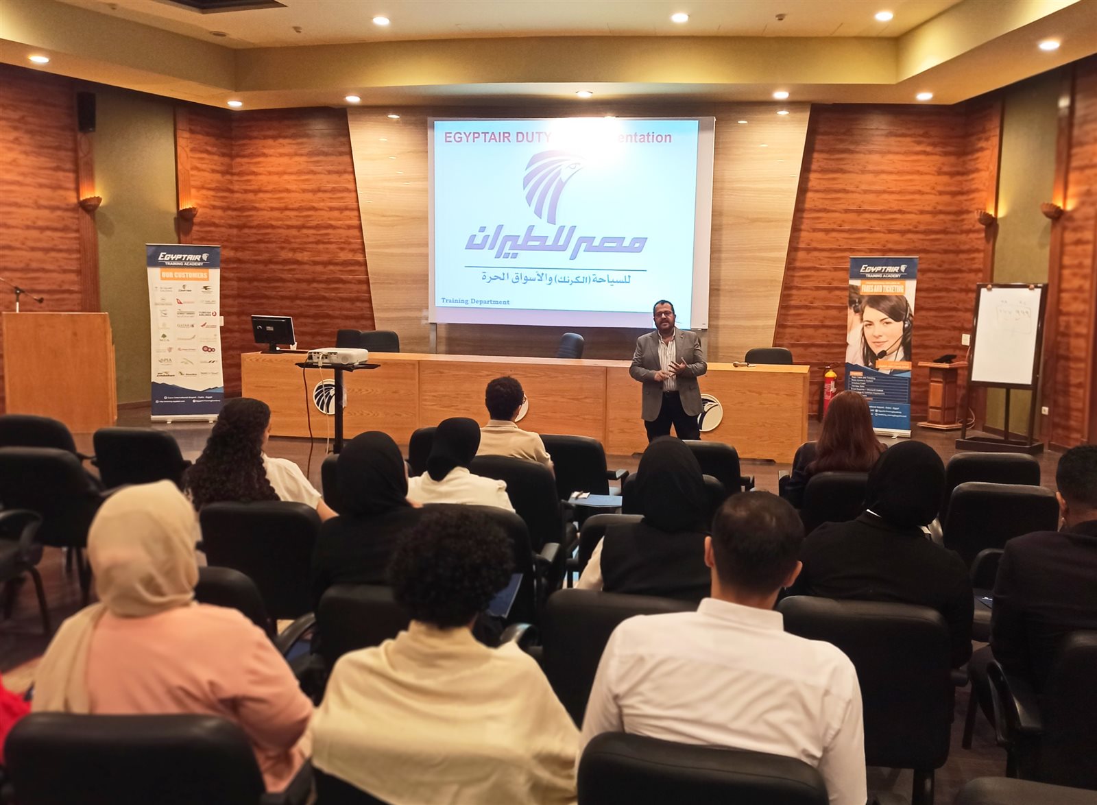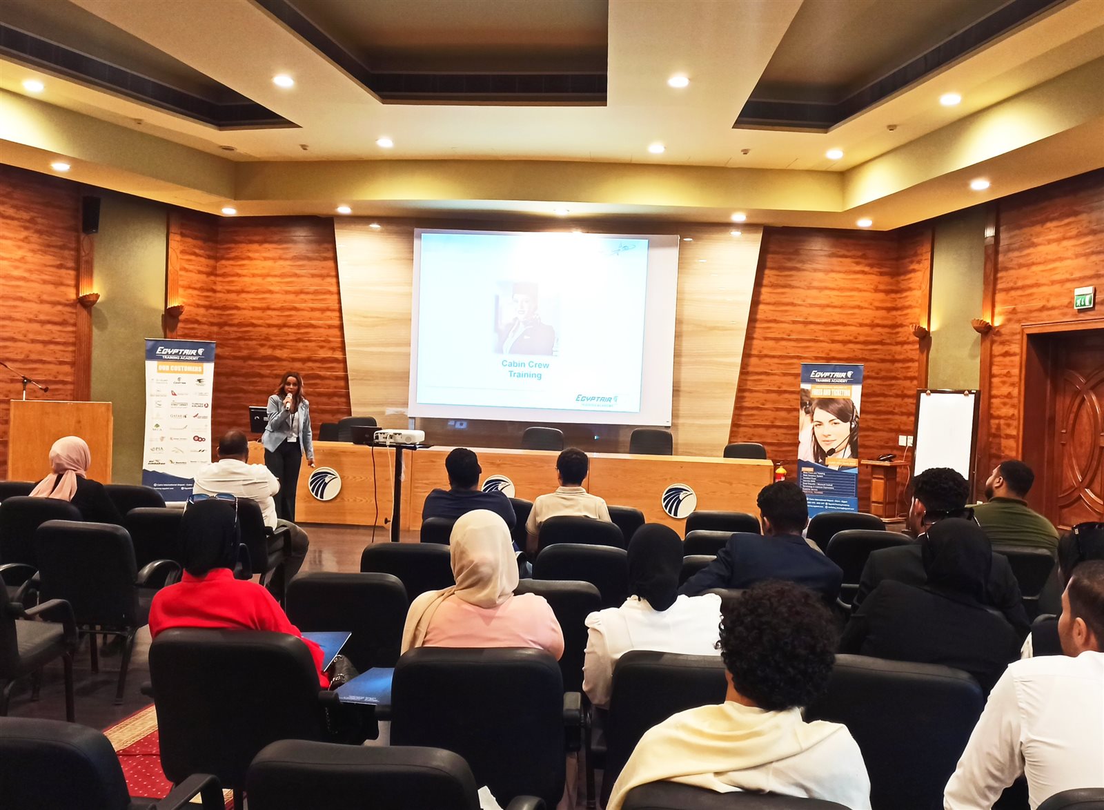- محاضرة تعريفية فى مجال تدريب الطيران ومراحل تدريب أطقم الطيارين والضيافة الجوية.