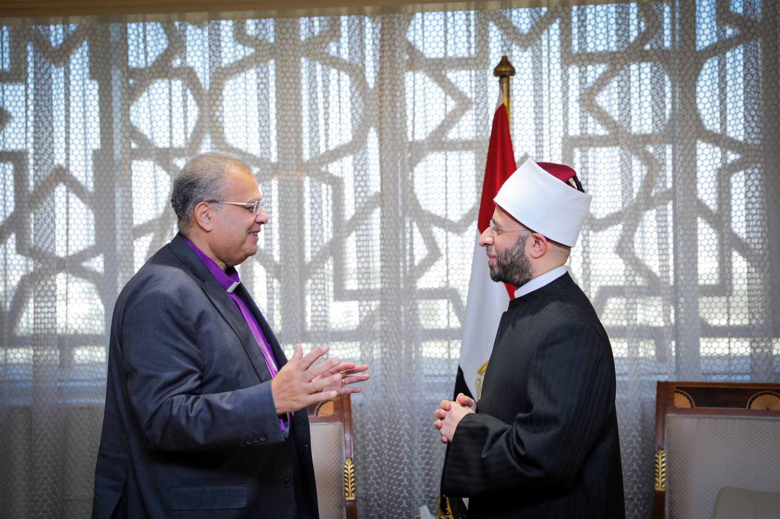 التقى فضيلة الإمام الأكبر الدكتور أحمد الطيب، شيخ الأزهر الشريف، اليوم، الدكتور القس أندريه زكي، رئيس الطائفة الإنجيلية بمصر، ووفدًا رفيع المستوى من مجلس كنائس جنوب إفريقيا وممثلي الكنائس الأمريكية، برئاسة الدكتورة القس ماي إليس كانون، المديرة التنفيذية لمنظمة "كنائس من أجل السلام في الشرق الأوسط".