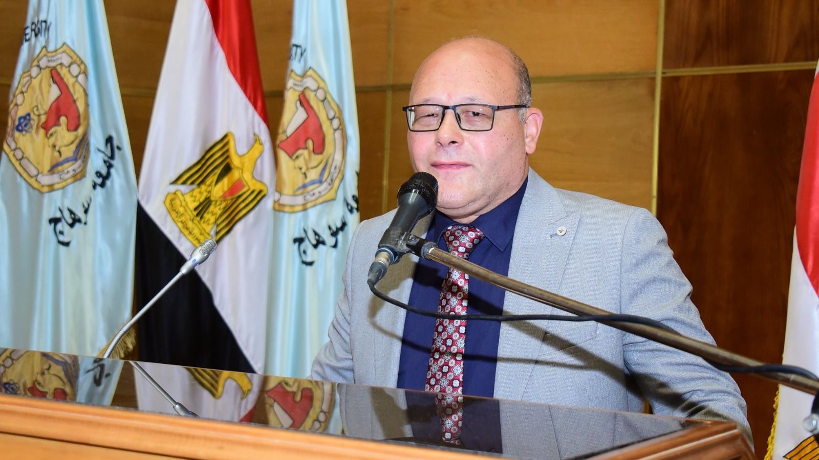 والدكتورة غني عبد الناصر عميد كلية التمريض والدكتور صدقي ابو ليلة عميد كلية الدراسات العليا والبحوث واللواء طارق حافظ مدير الأمن الجامعي والدكتور علاء غالب رئيس اسرة طلاب من اجل مصر.