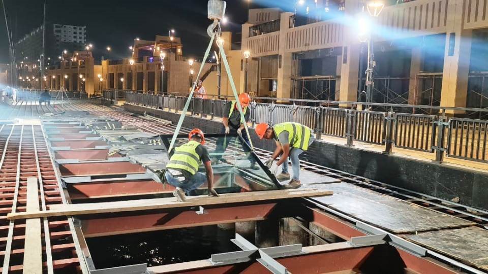 تابع اللواء دكتور إسماعيل كمال محافظ أسوان أعمال تركيب الممشى الزجاجى بالمستوى الثالث لمشروع ممشى أهل مصر بكورنيش النيل القديم .