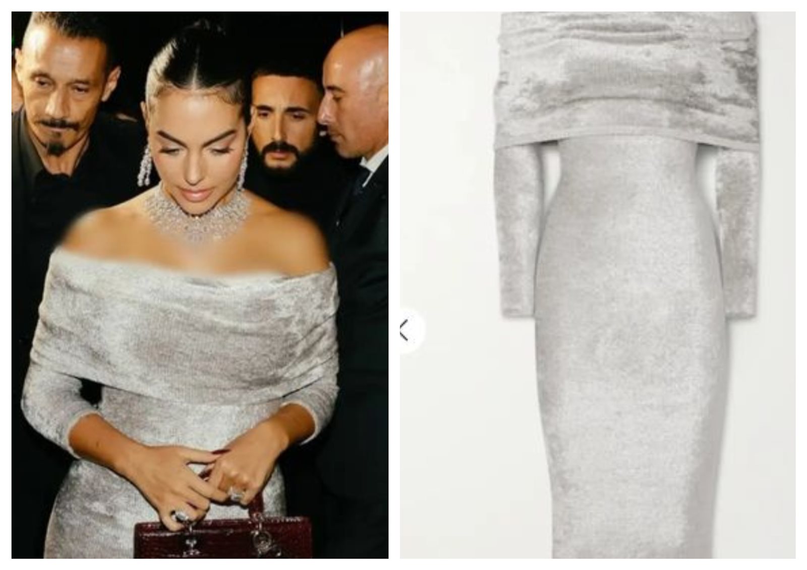 وظهرت أنابيلا هلال وهي ترتدي فستان قصير فيرزاتي باللون الذهبي والأبيض والأسود كت وبحمالات رفيعة، وقامت باختيار حذاء ناعم وبكعب عالي باللون الأسود، واختارت حقيبة باللون صغيرة من الجلد باللون الأسود.