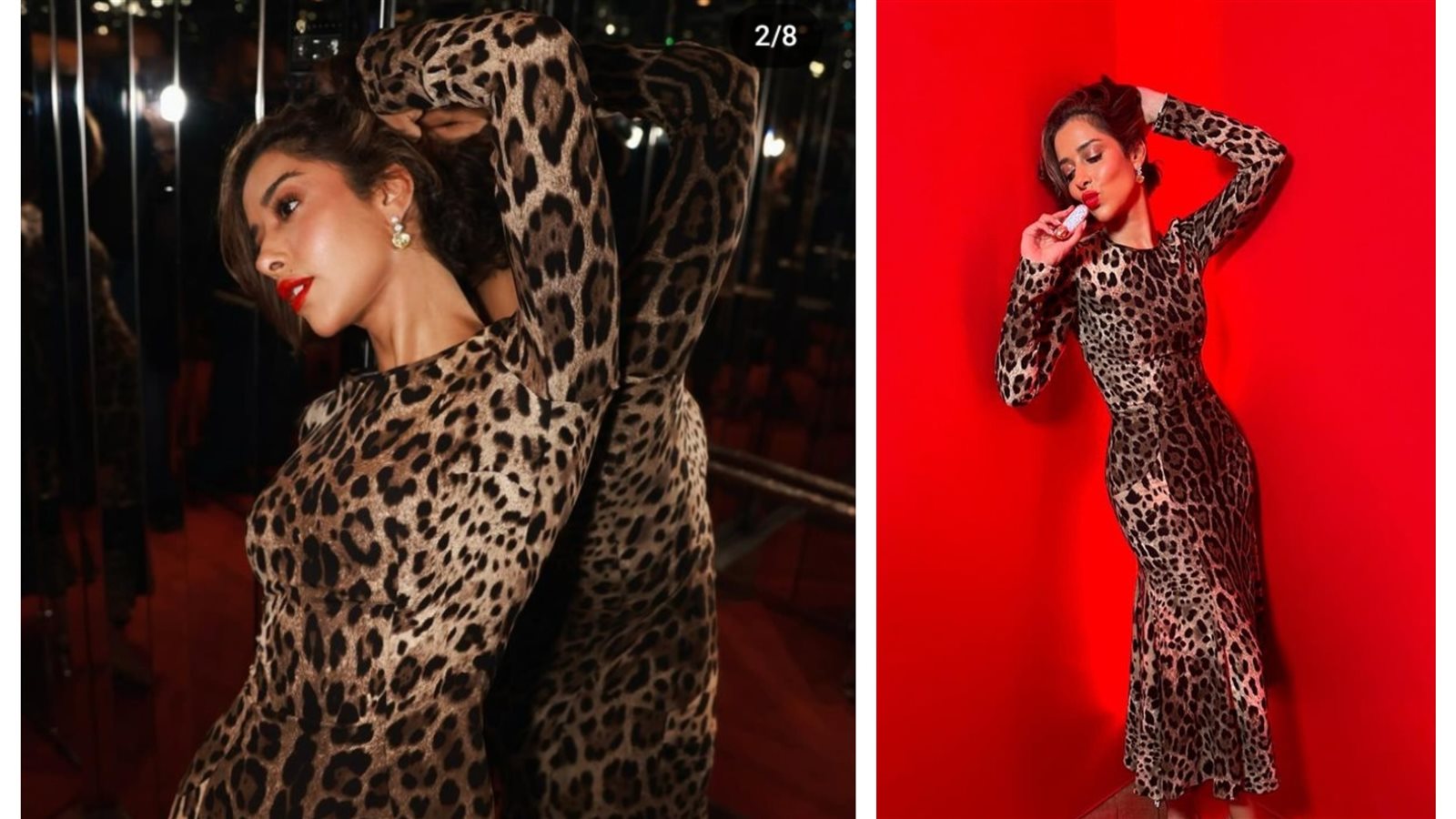 وأكملت إطلالتها بالاعتماد على الألوان الترابية في وضع المكياج، فقد اختارت اللون الكشميري القاتم كأحمر شفاه، مع اختيار الكحل الأسود، والماسكرا، والآي شادو بطريقة السموكي أيز لتبرز من جمال عينيها.