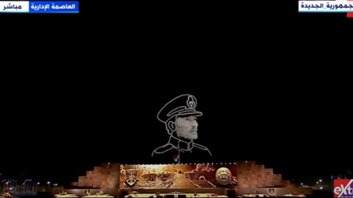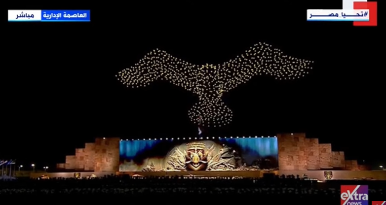 وقامت طائرات الدرون بكتابة كلمة “ شعب واحد” أثناء توجيه التحية لدولة الغمارات على دورها في مساندة مصر أيام الحرب .