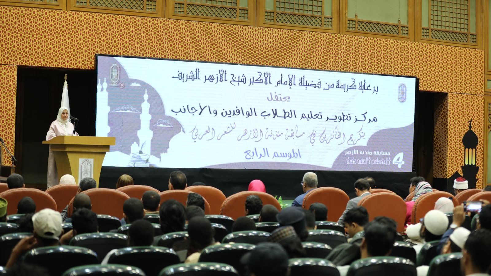 وأكدت رئيس مركز تطوير تعليم الطلاب الوافدين، خلال كلمتها اليوم باحتفالية مسابقةُ «مئذنة الأزهر للشعر العربي»، أن المسابقة ساعدت الدارسين على تحقيق منافع كثيرة، والحفاظَ على الانتماء الثقافي للأمة، الذي لم يعد لونًا من ألوان الترف الفكري، وإنما هو سلاح لمقاومة الغزو الثقافي للأمة والاحتلال الفكري للشعوب، وتحقيق لشرط من شروط التقدم الحقيقي الذي يُخرج الأمة من مأزق التخلف الموروث والهيمنة الوافدة.