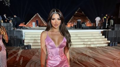 اختارت زينة فستاناً يبرز أنوثتها، يعكس الطابع الثقافي ويجمع بين الكلاسيكية والعصرية. تميزت بإطلالة تجسد الرقي، حيث أضفت على المكان سحراً خاصاً، أضاءت به الأهرامات.