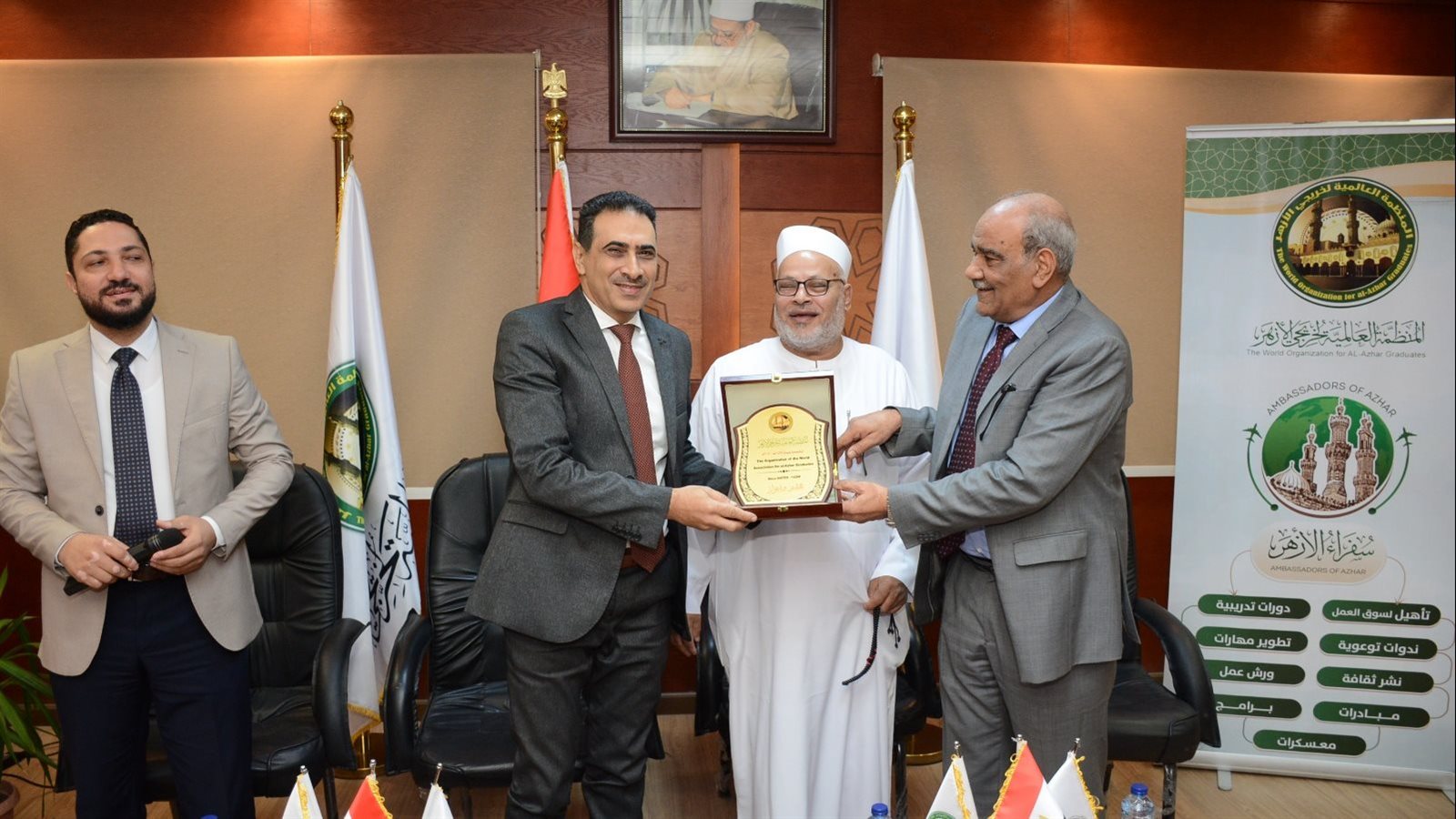 رحب الدكتور عبدالدايم نصير، بالحضور، وقال: إن المنظمة العالمية لخريجي الأزهر تهتم بتنمية الإنسان، وترسيخا لهذا الاهتمام تقدم المنظمة عددا من الدورات التدريبية، التي ترسخ للمهارات والقيم النبيلة، وتنفر من الأخلاق غير السوية، مثل: الظلم والفساد، وهو ما ينشئ لدينا أجيالا واعية.