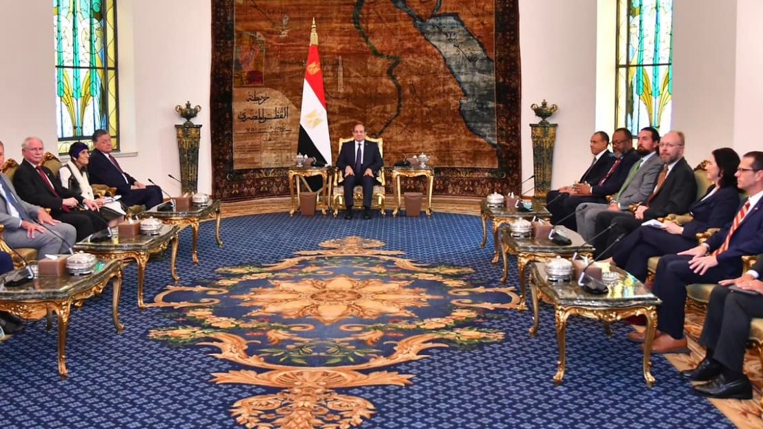 وكان اللقاء فرصة لتبادل الآراء حول الوضع الإقليمي، حيث أبدى الوفد اهتماماً بوجهة نظر الرئيس حول استعادة السلم والأمن، وتجنب توسع دائرة الصراع، وأبرز السيسي أهمية إقامة دولة فلسطينية مستقلة كسبيل لتحقيق السلام المستدام، معرباً عن ضرورة تحقيق مصالح شعوب المنطقة من أجل الوصول إلى الاستقرار والتنمية.