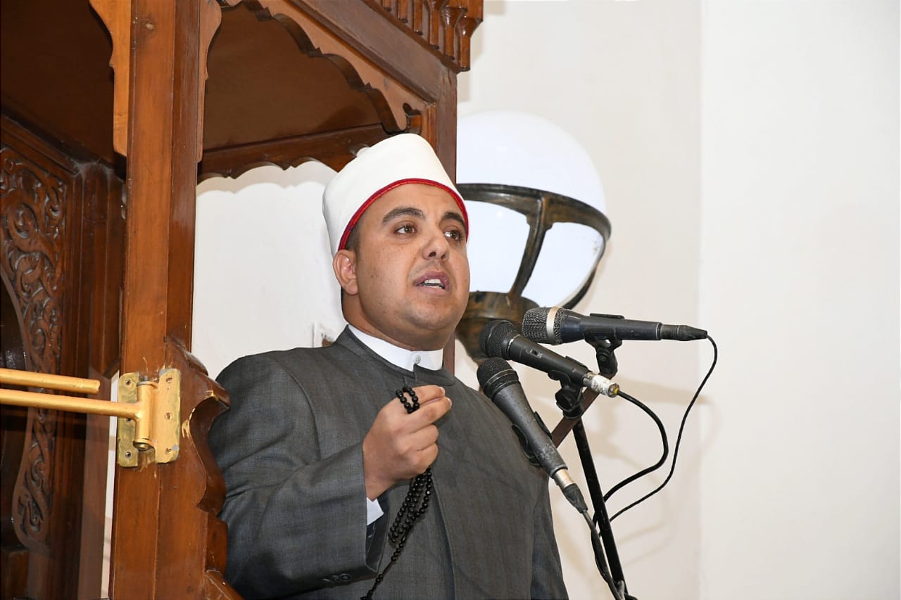 وأدى خطبة الجمعة بمسجد بدر الشيخ محمود السعيد إمام وخطيب بمديرية أوقاف السويس والتي جاءت بعنوان: وَقُولُوا لِلنَّاسِ حُسْنًا.