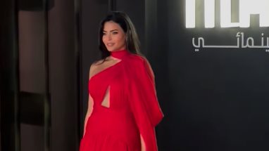 ظهرت منة شلبي بفستان كب باللون الذهبي اللامع واللون البيج من الأسفل، وبتصميم واسع من الأسفل، واختارت حذام باللون الذهبي اللامع حول خصرها.