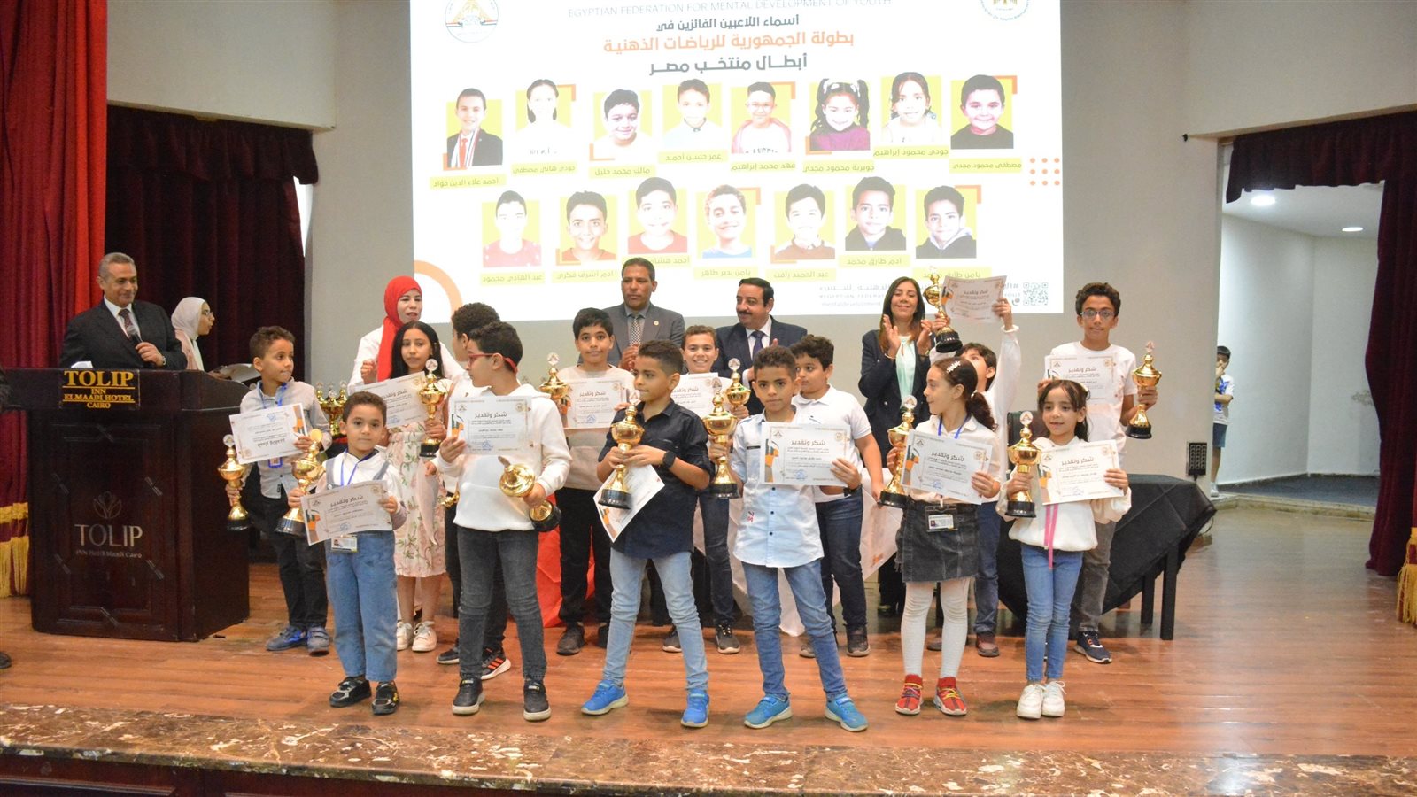 أقام الاتحاد المصري للتنمية الذهنية للنشء الحفل الختامي في المركز الأوليمبي بالمعادي تحت رعاية الدكتور أشرف صبحي، وزير الشباب والرياضة، لتكريم الفائزين في بطولة الجمهورية ٢٠٢٤م، التي نظمها مؤخرا في نادي المقاولون العرب الرياضي.