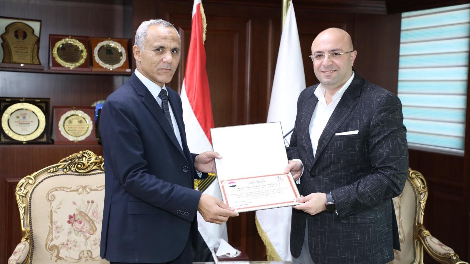 تجدر الإشارة إلى إهداء الدكتور منصور حسن درع الجامعة إلى المهندس حسن الشوربجي نائب رئيس هيئة المجتمعات العمرانية تقديراً للجهود المبذولة والتعاون المثمر بين الجامعة و الهيئة .