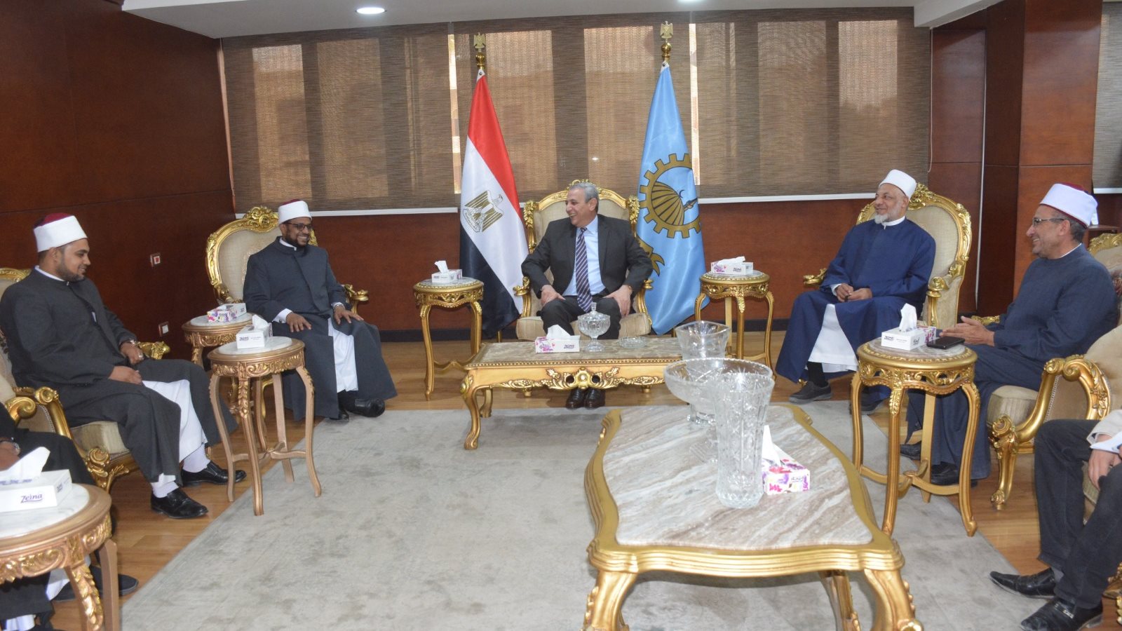 أوضح الدكتور محمد حسين أن البرتوكول يهدف إلى إقامة ندوات ومحاضرات توعوية بالجامعة والكليات التابعة لها ونشر الفكر الوسطي وتصحيح المفاهيم الخاطئة وبيان سماحة الإسلام وجهود الدولة المبذولة في محاربة الإرهاب والتطرف والتصدي للأفكار المتطرفة الهدامة، وتسليط الضوء على محاور التنمية في مختلف المجالات مع بيان صحة الانسان الفكرية ومجابهة الشائعات.
