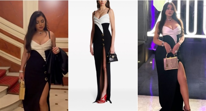 ولتكمل إطلالتها الفاخرة، نسقت ليلى الفستان مع حقيبة جلدية سوداء لامعة مزينة بالكريستال، تحمل توقيع أحد أبرز المصممين، ويصل سعرها إلى 8679 دولارًا (حوالي 428 ألف جنيه مصري)، لتصل التكلفة الإجمالية لإطلالتها إلى ما يقارب نصف مليون جنيه مصري.
