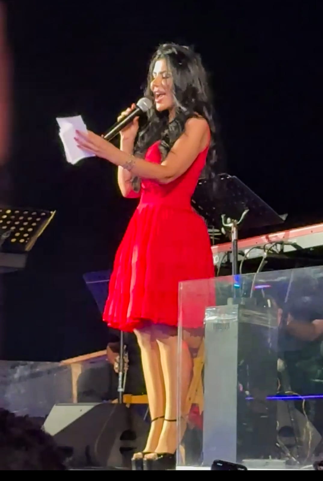 وافتتحت إليسا وصلتها الطربية الرومانسية بأغنية "حلوة يا بلدي" للراحلة داليدا وسط عاصفة من صيحات وهتافات الإعجاب بعدها رحبت بالحضور لحفاوة الإستقبال قائلة: "وحشني الغناء بمصر .."