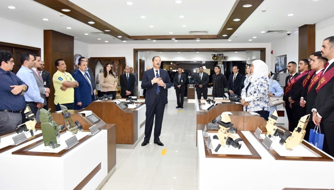 بدأت الزيارة بعرض تقديمى عن الشركة وما تشمله من مصانع وخطوط إنتاج لصناعات عسكرية ومدنية، أعقبها المرور على معرض يضم نماذج من النظم الدفاعية التى يتم تصنيعها محلياً والمنظومات البصرية التى تستخدم فى تأمين المنشآت والمرافق الحيوية بالدولة لتلبية إحتياجات القوات المسلحة وتصدير الفائض للدول الشقيقة والصديقة ، ودعم المشروعات القومية للدولة ، كما تم المرور على عدد من المصانع والأقسام التخصصية وخطوط الإنتاج والتى يتم العمل بها وفقاً للنظم التكنولوجية المتطورة.