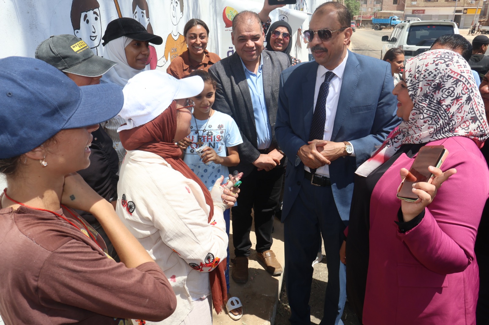 كما التقى المحافظ عددا من الشباب أبناء القرية خلال مساهمتهم في أعمال التجميل بالشارع ضمن مبادرة غيرها في إطار مشروع ابنتي الغالية لجمعية صحبة الخير كمشاركة مجتمعية.