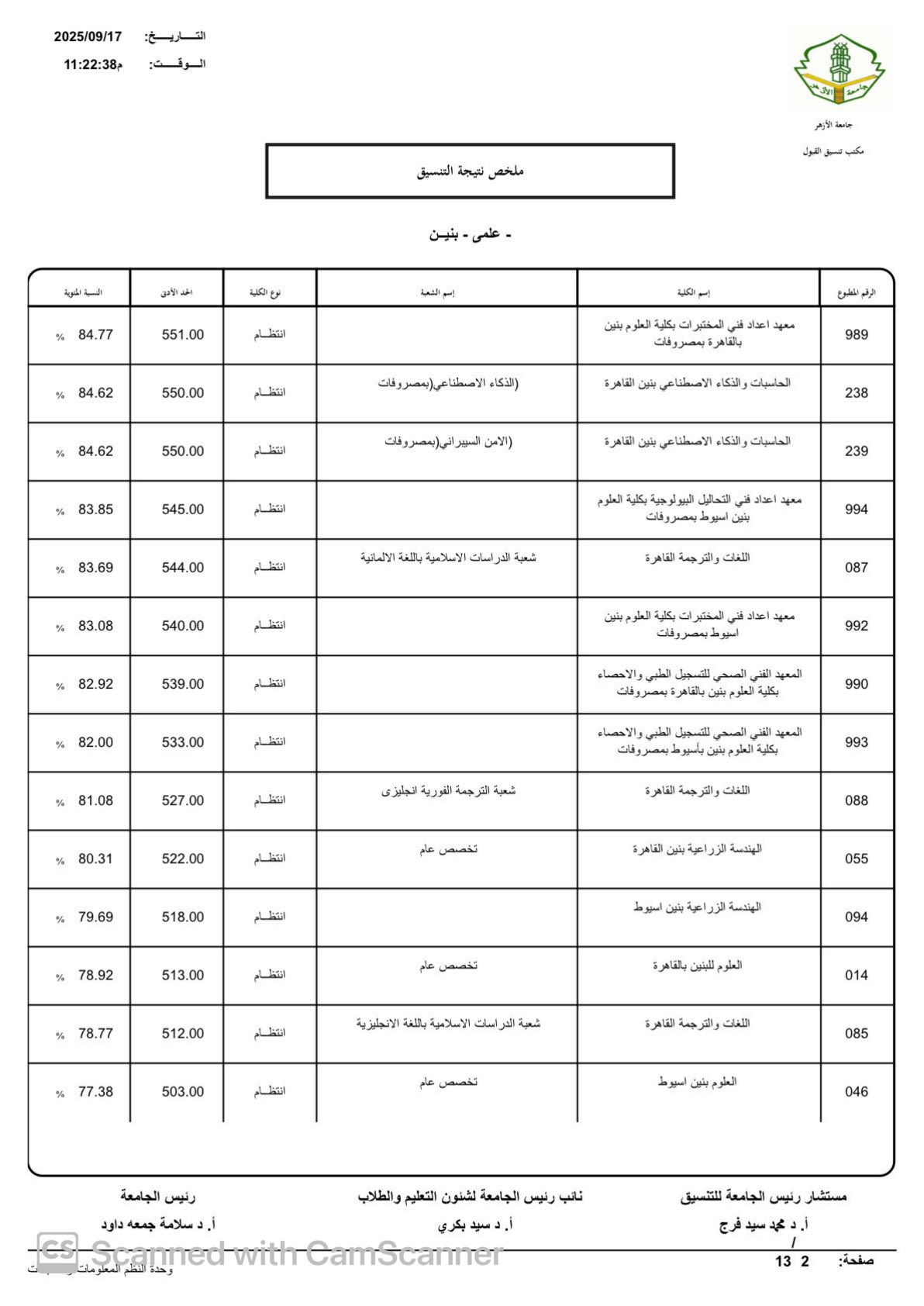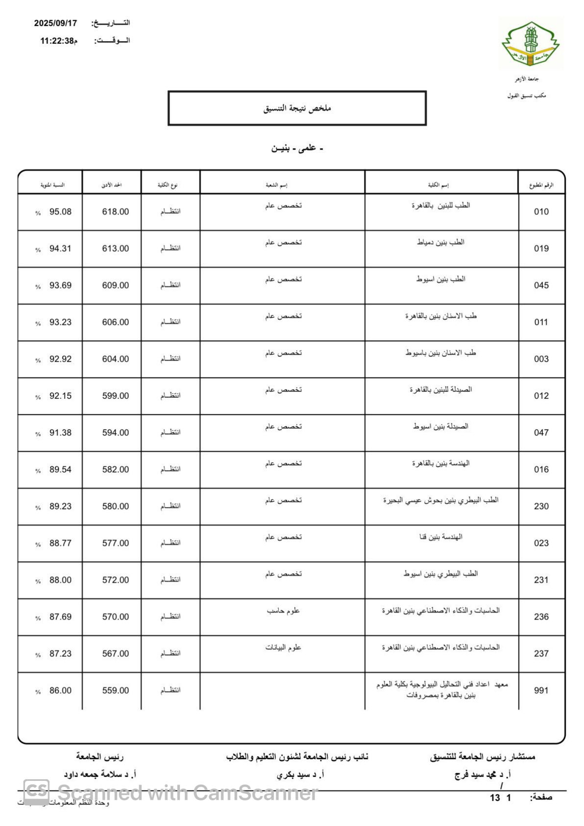 كلية التمريض فصول دمياط ( 572) درجة بنسبة 88 ٪