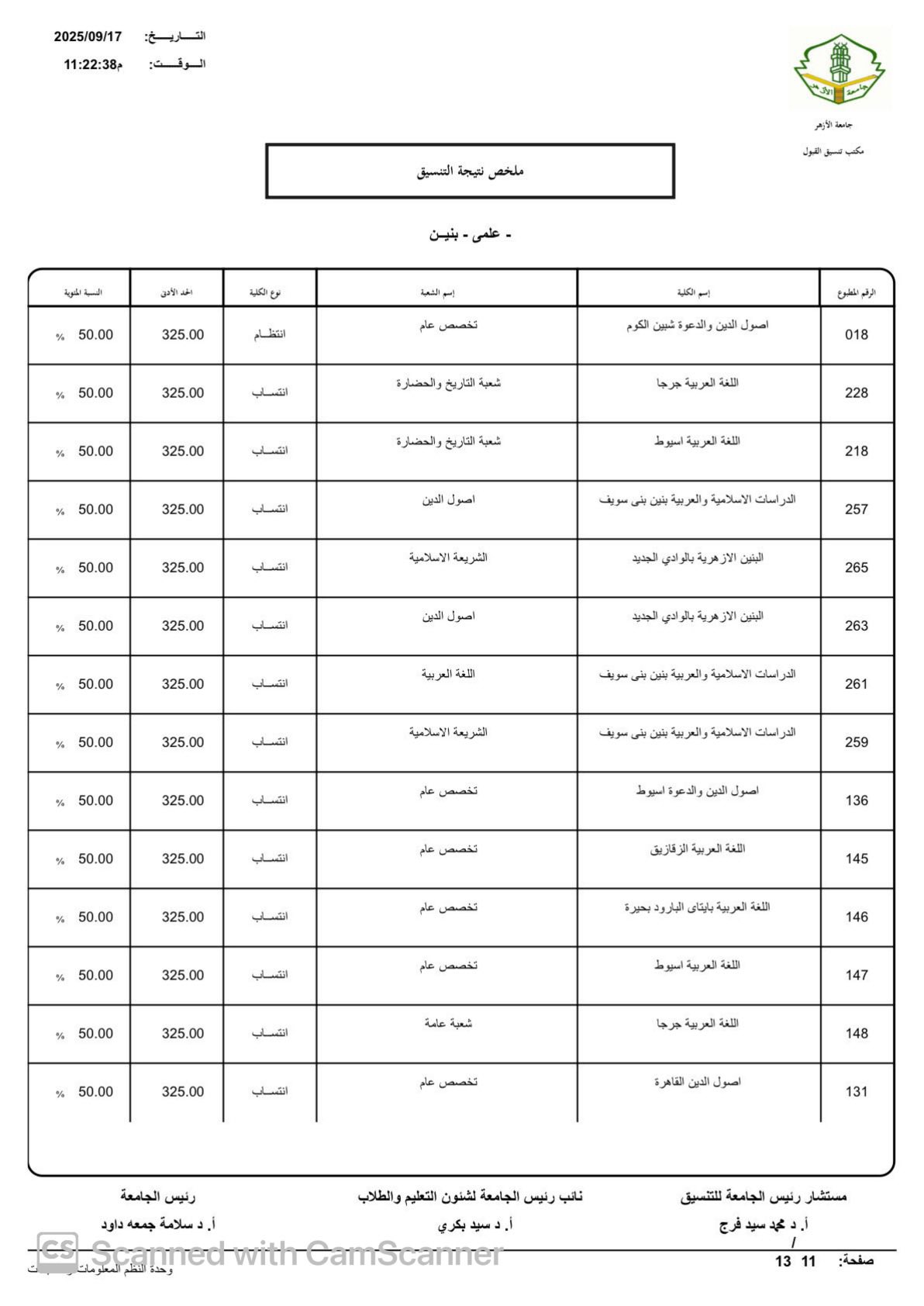 وأوضح أن إجمالى عدد الناجحين بالثانوية بلغ ( 129885) طالبا، تقدم منهم للتسجيل في تنسيق الأزهر 2025، عدد 102988 طالب وطالبة.