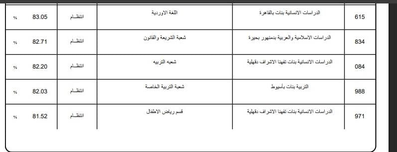 - التربية بنات بالقاهرة شعبة التربية الخاصة 87.62%.