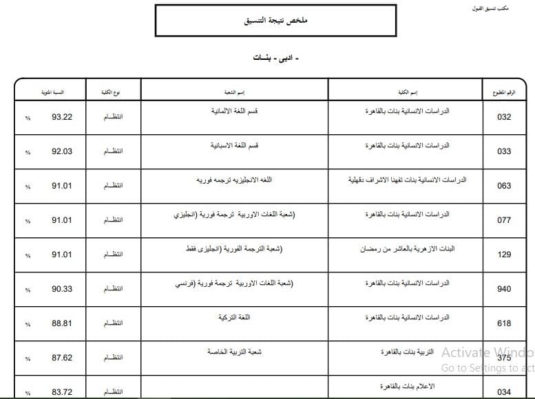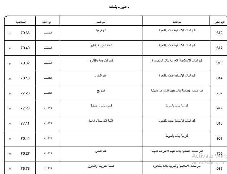 - الدراسات الإنسانية بنات بالقاهرة قسم اللغة الإسبانية 92.03%.