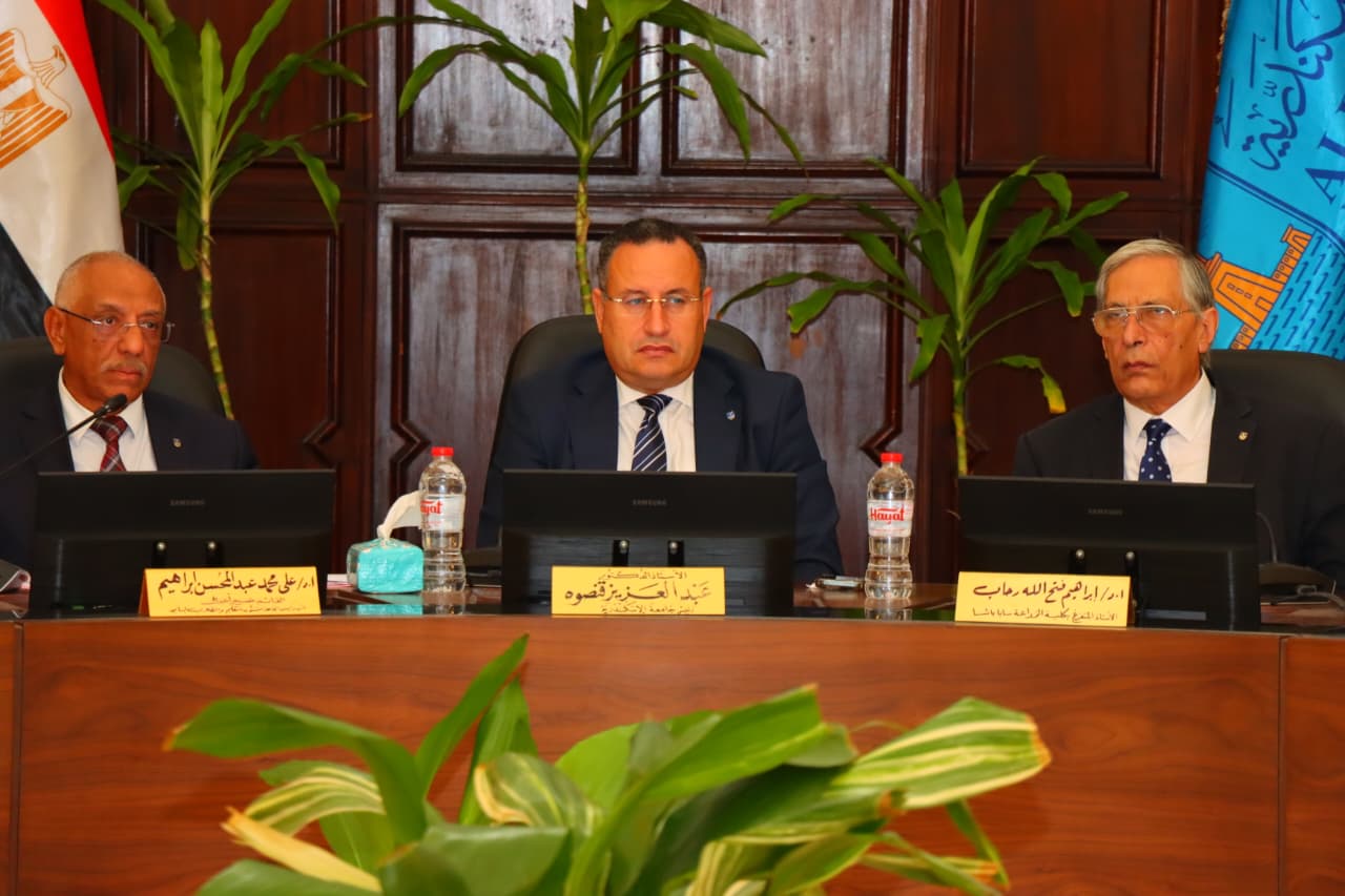 واستمع رئيس الجامعة، خلال المجلس، إلى رؤى وكلاء الكليات وخططهم المستقبلية لتطوير العملية التعليمية داخل كلياتهم، وذلك في إطار الاستراتيجية العامة للجامعة التى تضع جودة التعليم والارتقاء بالعملية التعليمية على رأس أولوياتها، مع التركيز على تعزيز دور الطلاب وتنمية مهاراتهم بما يتماشى مع متطلبات سوق العمل المحلى والدولى.