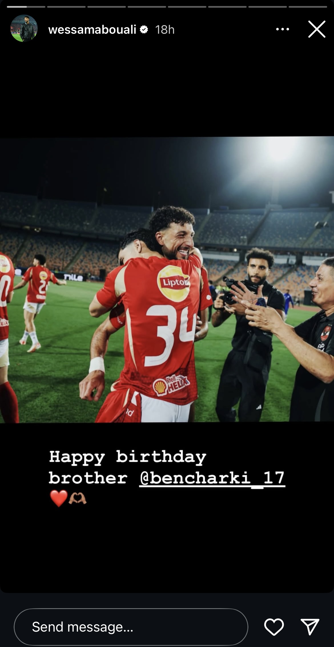 وجه وسام أبو علي، لاعب كولومبوس كرو، رسالة للاعب النادي الأهلي أشرف بن شرقي عبر حسابه على انستجرام.