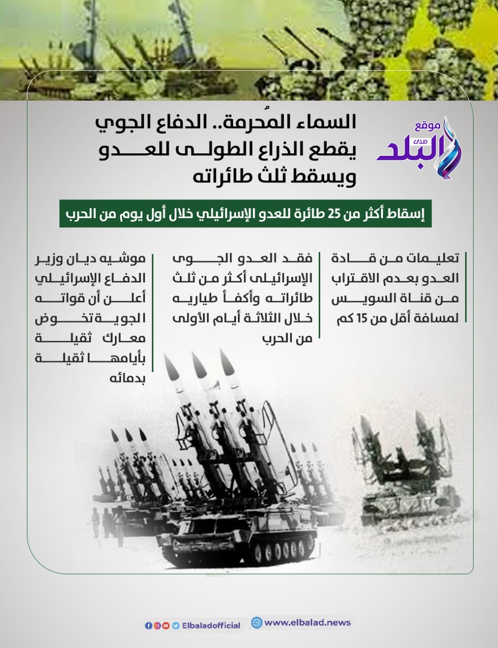 وخلال الثلاثة أيام الأولى من الحرب، فقد العدو الجوى الإسرائيلى أكثر من ثلث طائراته وأكفأ طياريه الذين كان يتباهى بهم، وكانت الملحمة الكبرى لقوات الدفاع الجوى خلال حرب أكتوبر، مما جعل "موشى ديان" يعلن فى رابع أيام القتال عن أنه عاجز عن اختراق شبكة الصواريخ المصرية وذكر فى أحد الأحاديث التليفزيونية يوم 14 أكتوبر 73 أن القوات الجوية الإسرائيلية تخوض "معارك ثقيلة بأيامها ثقيلة بدمائه".
