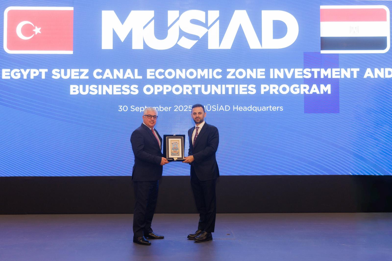 التقى وليد جمال الدين، رئيس الهيئة العامة للمنطقة الاقتصادية لقناة السويس، صباح اليوم، رئيس اتحاد رجال الأعمال المستقلين الأتراك (MÜSİAD) وممثلي 12 شركة تركية كبرى تعمل في مختلف القطاعات، وذلك خلال مائدة مستديرة بمقر الاتحاد، ضمن فعاليات اليوم الثاني من جولته الترويجية في تركيا للترويج لفرص الاستثمار في المنطقة الاقتصادية. ويُعد اتحاد MÜSİAD أحد أكبر منظمات الأعمال في تركيا، حيث يضم أكثر من 13 ألف عضو يمثلون ما يقرب من 60 ألف شركة يعمل بها نحو 1.8 مليون موظف، ويملك شبكة واسعة تضم 83 مكتبًا داخل تركيا و85 مكتبًا خارجيًا في 71 دولة، وذلك بحضور السفير د. وائل بدوي، سفير مصر في تركيا، والسفير حاتم الألفي، قنصل مصر العام في إسطنبول، والسيد علي باشا، الوزير المفوض التجاري في إسطنبول.