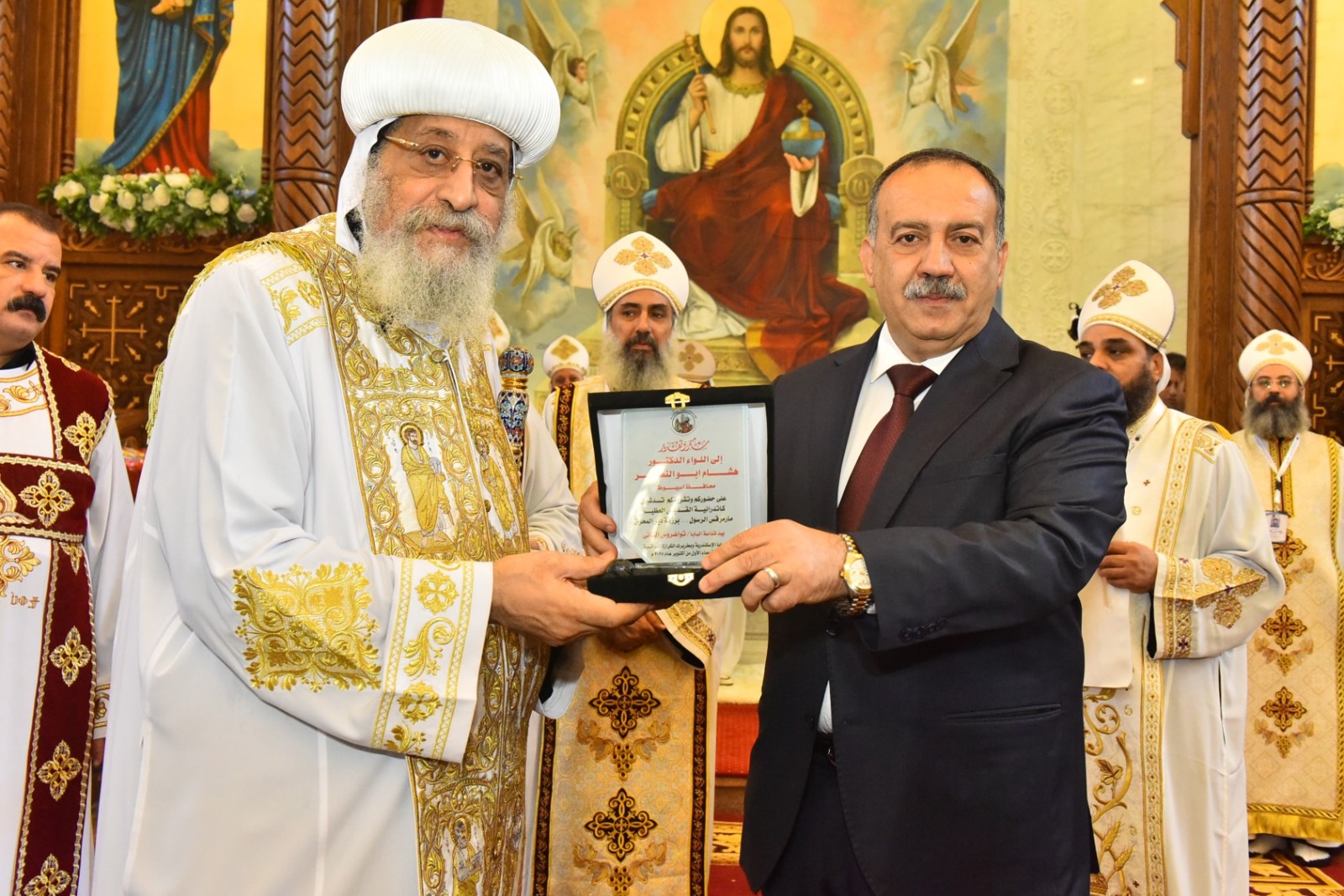 وفي ختام الفعالية، قدم محافظ أسيوط أيقونة السيدة العذراء إلى قداسة البابا تقديرًا له، فيما أهدى قداسة البابا درع الكنيسة إلى المحافظ ونائبه تعبيرًا عن التقدير المتبادل.