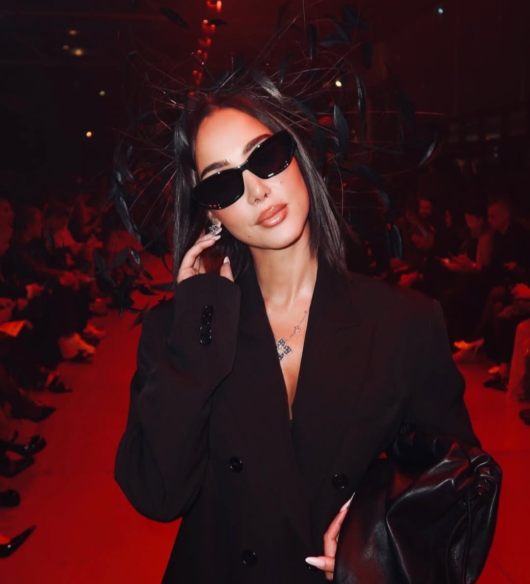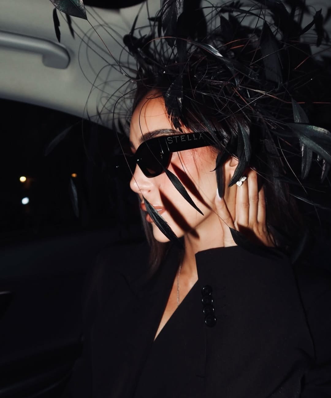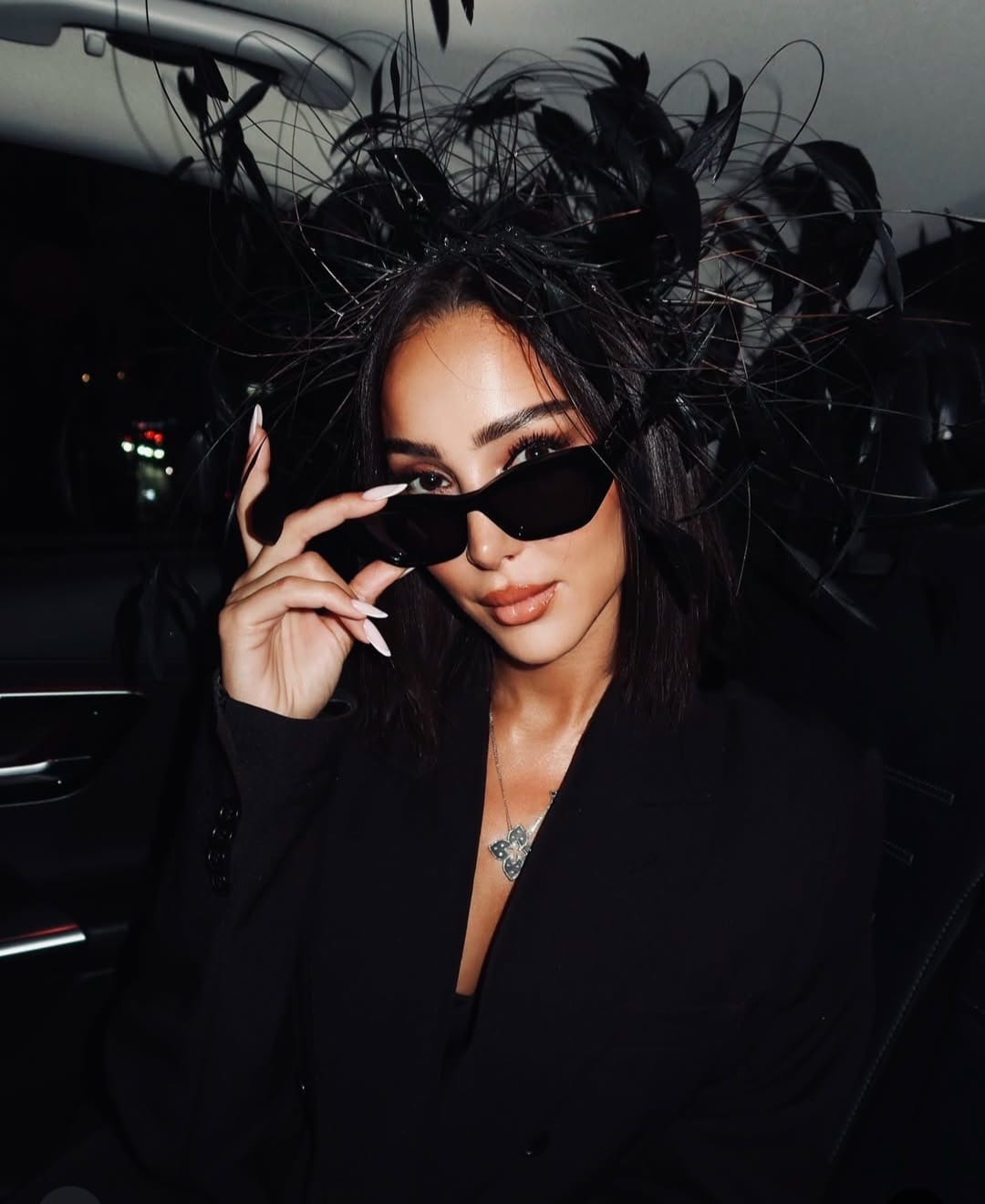 وخطفت حسناء الغناء بسة بوسيل الأنظار بإطلالتها الأنيقة حيث ارتدت بدلة سوداء كلاسيكية عكست حضورا قويا ولمسة من الفخامة، ونسقتها مع نظارة شمسية سوداء كبيرة منحتها مظهرا غامضا وجريئا، وزادت الإطلالة تميزا بإكسسوار رأس فاخر يزينه الريش الأسود، في لمسة درامية توحي بأجواء عروض الأزياء الراقية، أما القلادة البسيطة فكانت كافية لتضيف لمسة أنثوية رقيقة، في حين جاء المكياج البرونزي البراق وتسريحة الشعر المنسدلة ليكملا المظهر بكامل الأناقة والثقة.