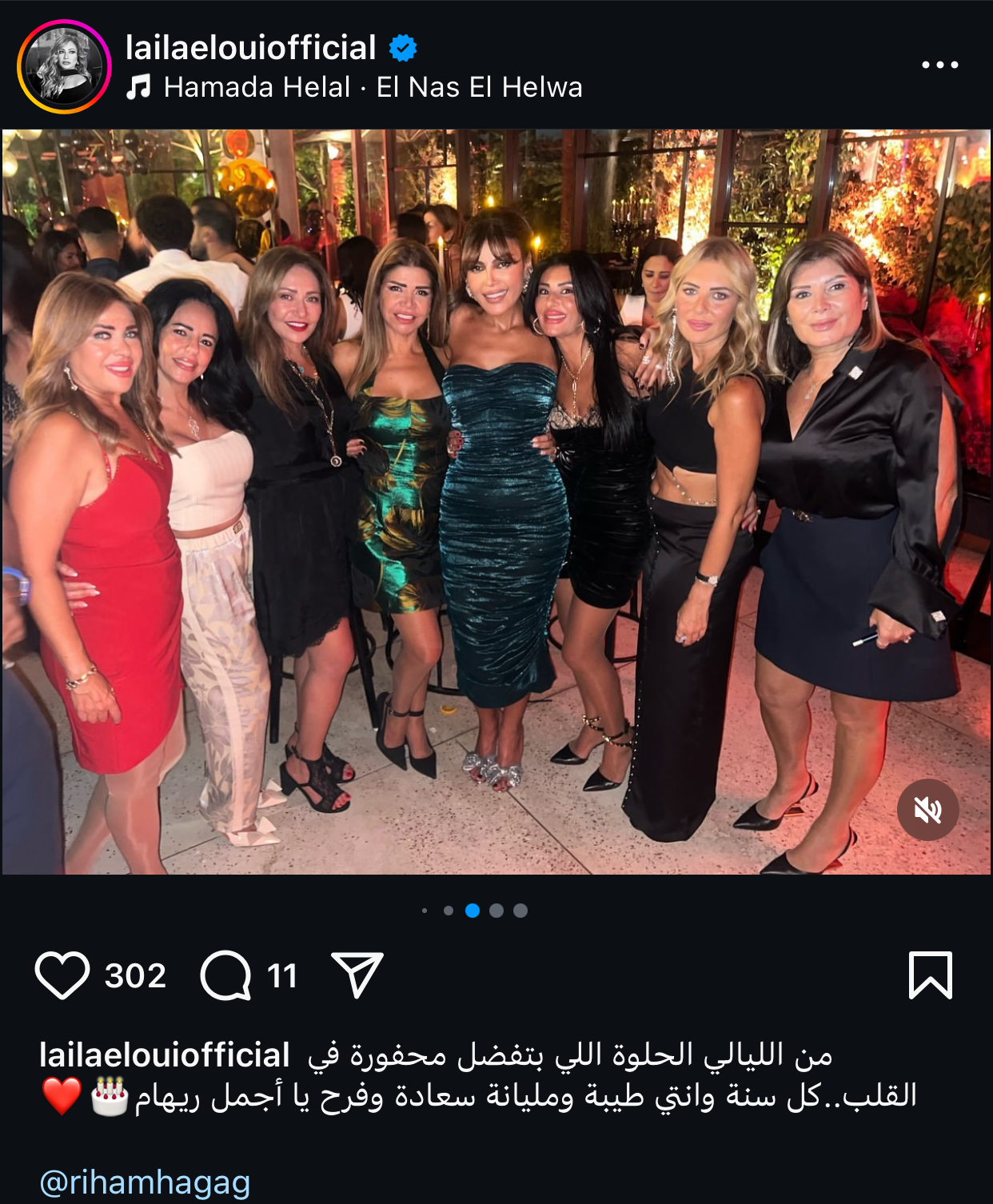 نشرت الفنانة ليلى علوي، صورا لها عبر حسابها الشخصي بموقع إنستجرام من حفل عيد ميلاد الفنانة ريهام حجاج، معبرة عن امتنانها وحبها.