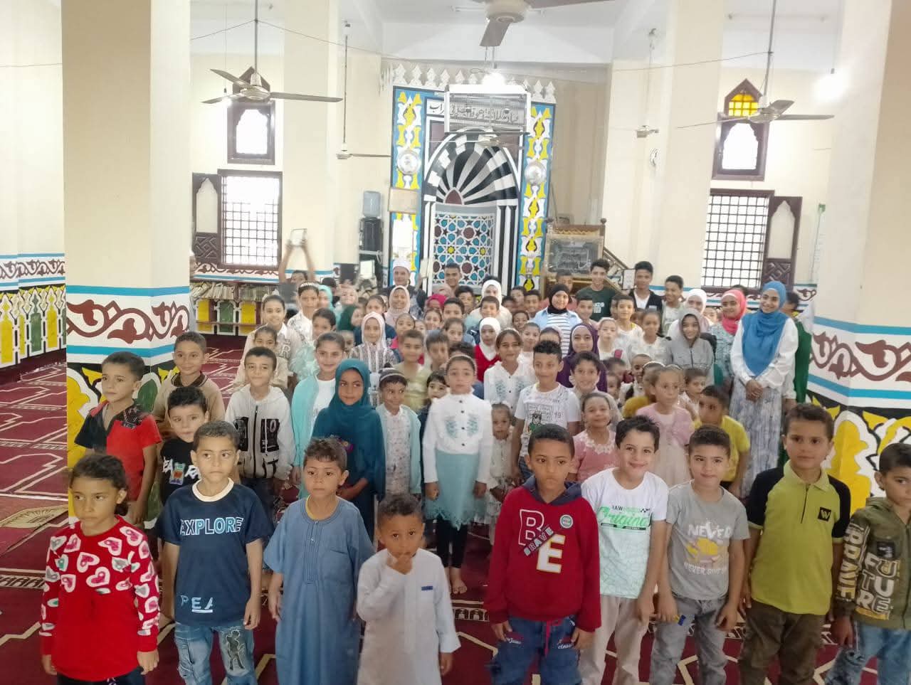 وشهد الختام توزيع الهدايا والمصاحف على الأطفال المتميزين، كما شارك الطالب عمر عماد بإنشاد ابتهال بعنوان: "لا إله إلا الله محمد رسول الله"، مما أضفى روحًا إيمانية مميزة على الحفل.