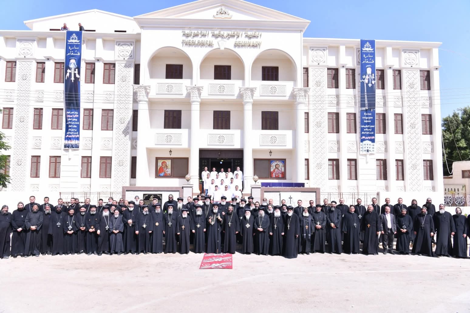 وألقى الراهب القمص أرساني المحرقي المشرف على طلبة الإكليريكية كلمة ترحيب بقداسة البابا، حدثهم بعدها قداسته عن ثلاثية هامة تؤدي من خلالها الكنيسة عملها، وهي: التعليم والتكريس والرعاية. والتي تعد بمثابة مثلث الخدمة الكنسية.