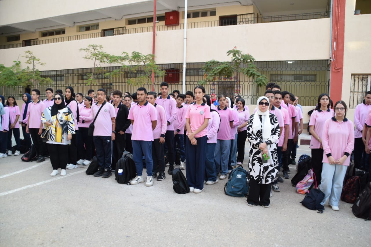 ووجه مدير المديرية الشكر للأستاذة منى البهنساوى مدير المدرسة والطاقم المعاون لها على المظهر المشرف والطابور الصباحي المتميز لطلاب المرحلة الإعدادية والثانوية.