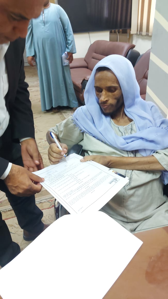 وذكر أنه لأول مرة يبتسم منذ إصابته بالمرض، وذلك بعد توقيعه على عقد استلام العمل، والذي سيخفف من أعباء أسرته المادية فضلًا عن التيسيرات التي تم تقديمها له بعد رصد معاناته خلال اليومين الماضيين.