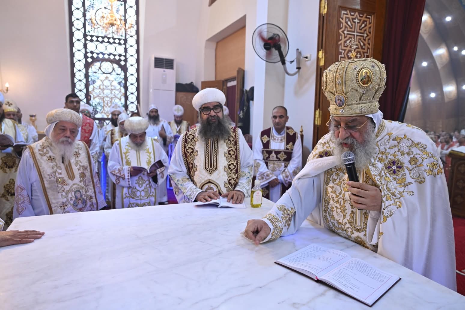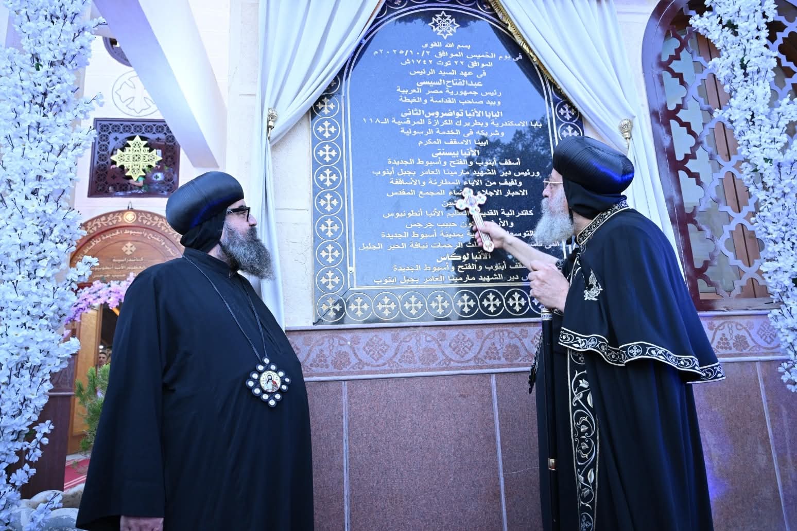 دشن قداسة البابا تواضروس الثاني صباح اليوم كاتدرائية القديسين الأنبا أنطونيوس والأرشيدياكون حبيب جرجس بأسيوط الجديدة التابعة لإيبارشية أبنوب والفتح وأسيوط الجديدة، بمشاركة 24 من الآباء المطارنة والأساقفة، في خامس محطات زيارته الرعوية لمحافظة أسيوط، ودقت طبول فريق الكشافة ترحيبًا بقداسته، وقدم طفلان باقة ورد لقداسته وأزاح الستار عن اللوحة التذكارية التي تؤرخ لتدشين الكاتدرائية، ثم دخل إلى الكنيسة يتقدمه خورس الشمامسة وسط أجواء مشحونة بالفرحة من قبل الشعب.