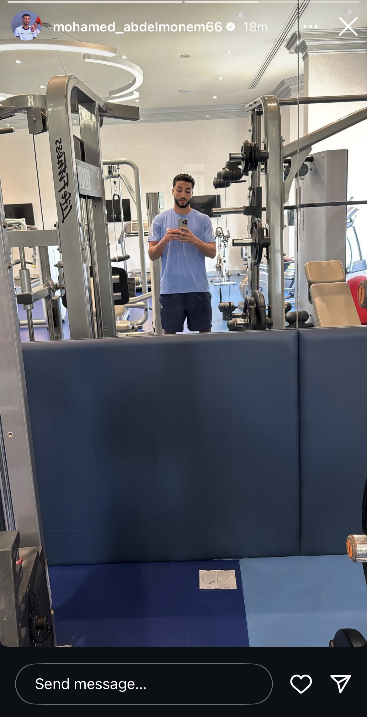 وتألق محمد عبد المنعم من صالة الجيم اثناء اداء التمارين الرياضية.