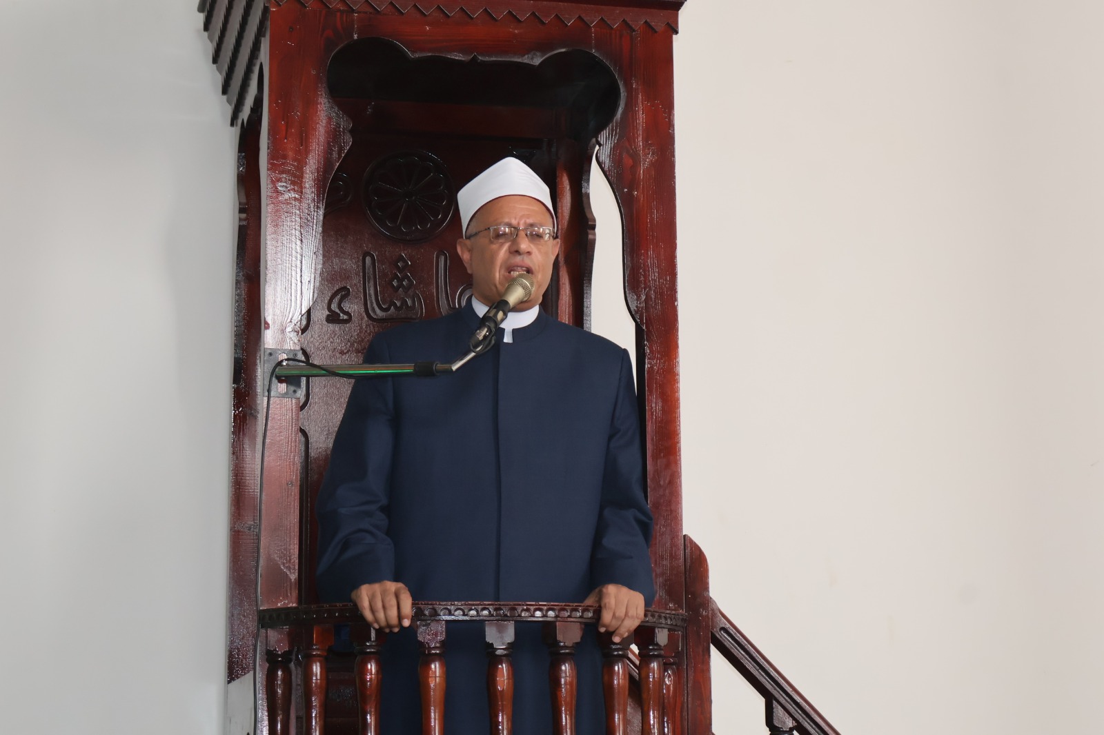 وألقى وكيل وزارة الأوقاف خطبة الجمعة بعنوان "شرف الدفاع عن الأوطان"، مؤكدًا أن حماية الأرض والعرض هي أسمى مراتب العطاء، يهب فيها الإنسان روحه ليُسجَّل في سجل المجد والخلود.