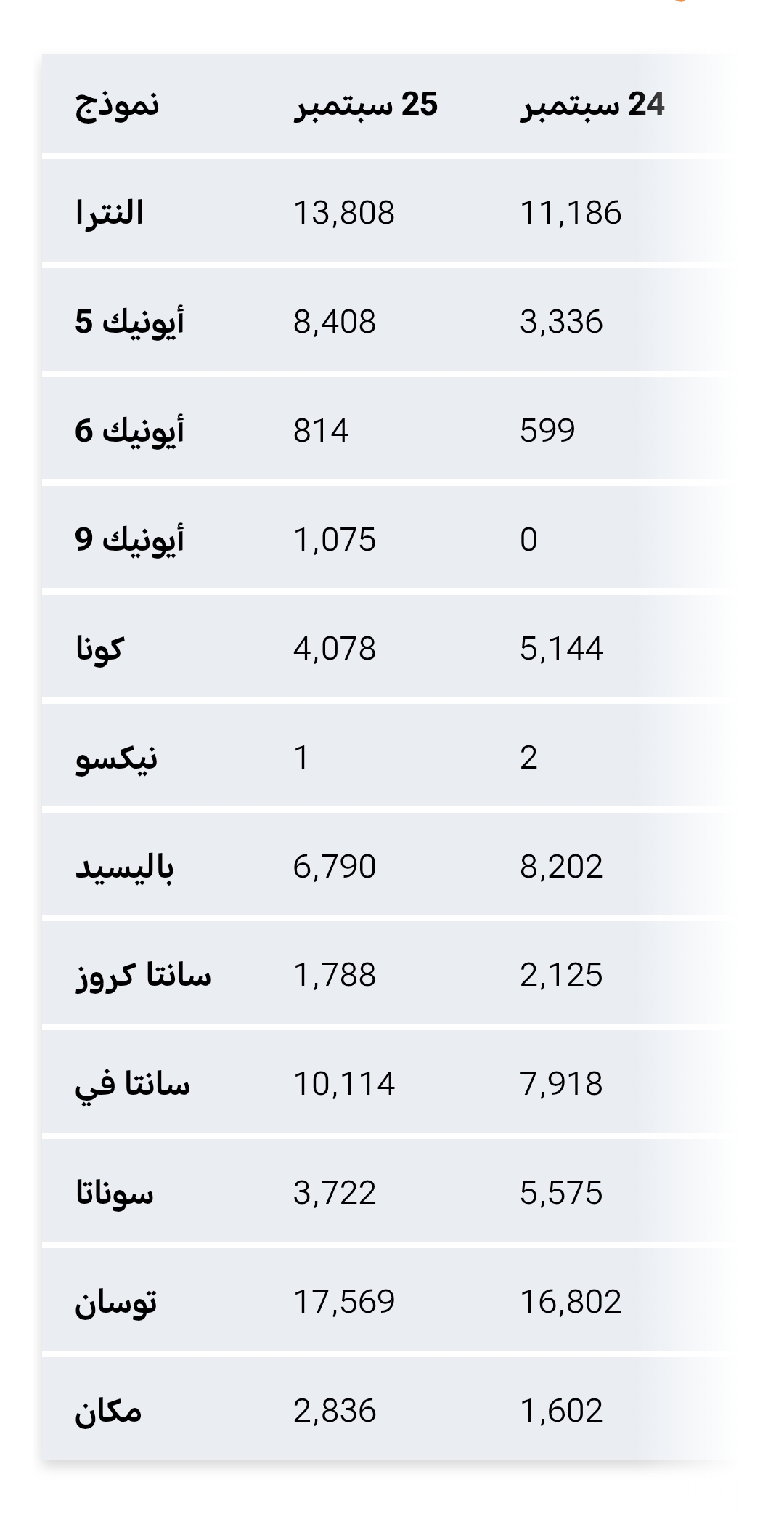 ومنذ بداية 2025 وحتى نهاية سبتمبر، سجلت السيارة نموًا في المبيعات بنسبة 36% بإجمالي 41,091 وحدة، مقابل 30,318 في الفترة نفسها من 2024.