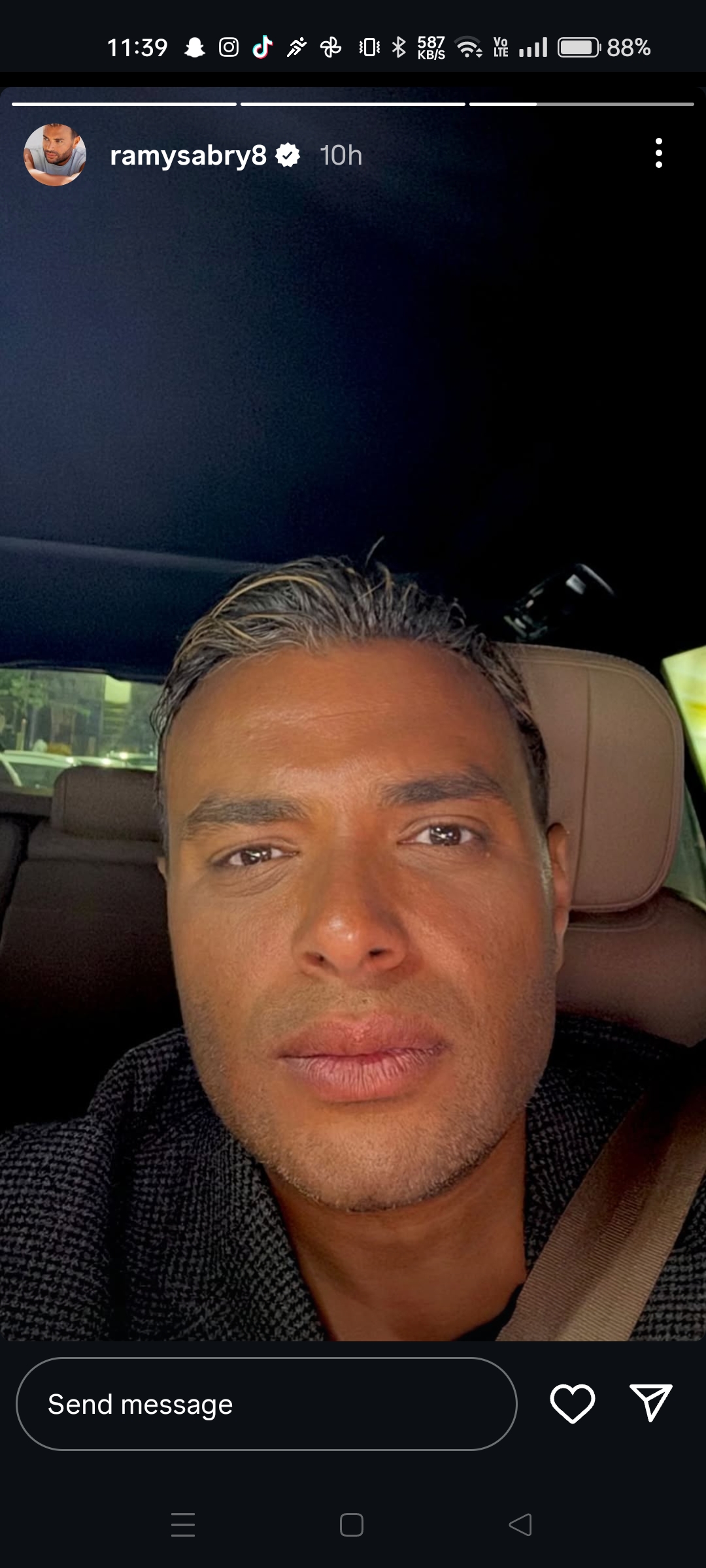 وظهر رامي في الصور من سيارته، في أحدث ظهور عبر إنستجرام.
