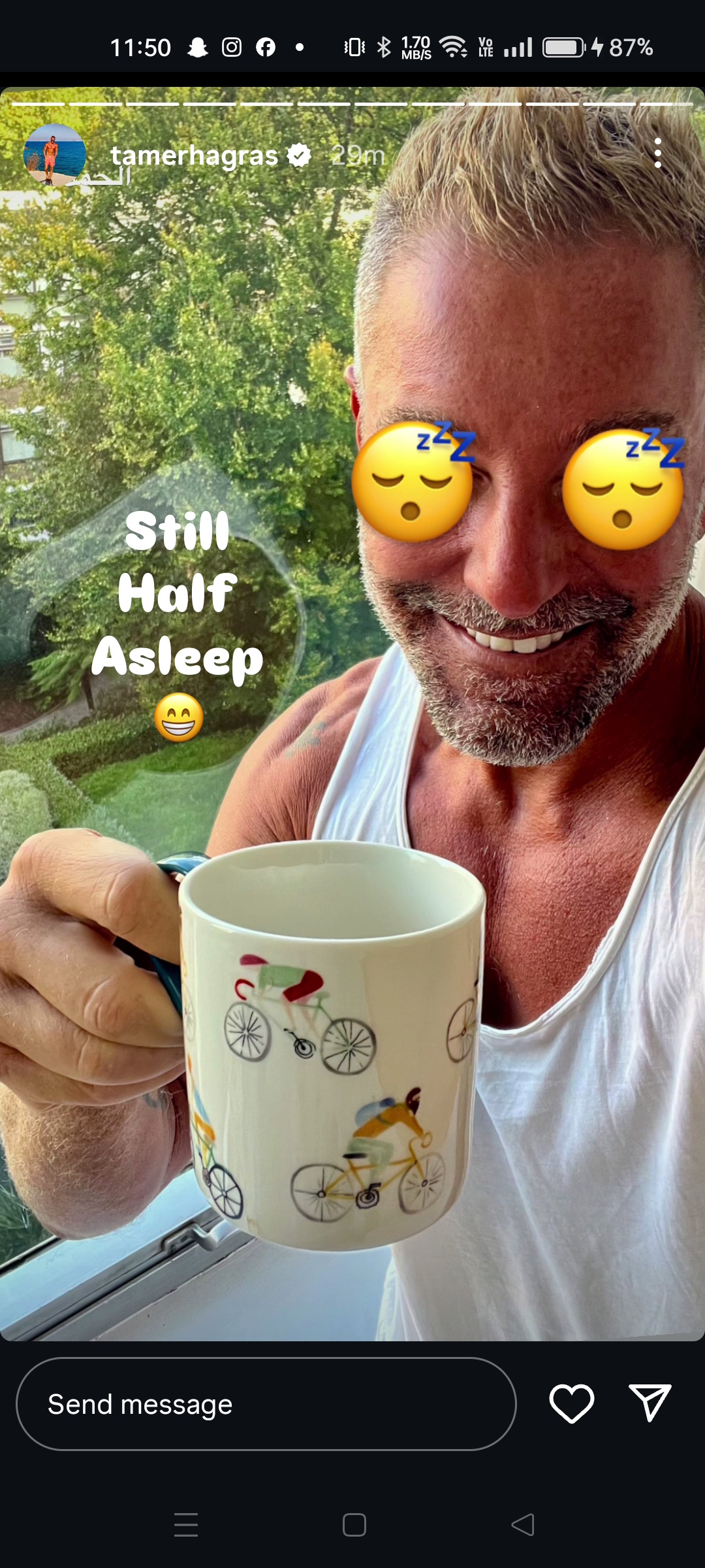 وظهر تامر هجرس في الصورة بإطلالة صباحية.