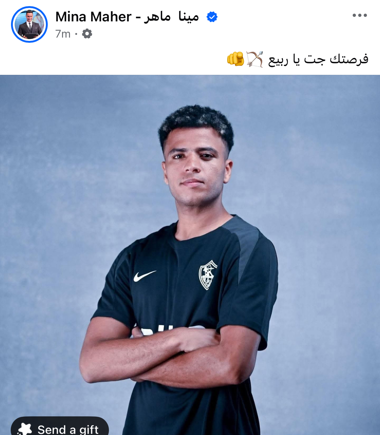 نشر الإعلامي مينا ماهر منشورًا جديدًا عبر صفحته الرسمية على موقع التواصل الاجتماعي “فيسبوك”، وجه من خلاله رسالة دعم وتحفيز للاعب الزمالك أحمد ربيع.