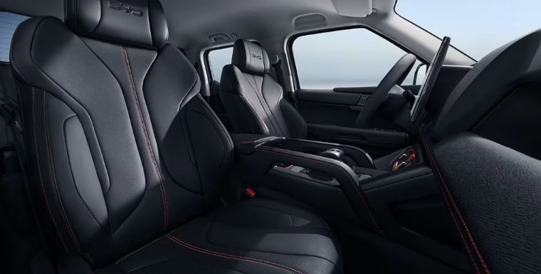 أما المقصورة الداخلية، فتأتي بمقاعد مكسوة بجلد صناعي PU سهل التنظيف ومدعومة بخاصية التبريد والتسخين، إضافة إلى ضبط كهربائي ودعم قطني، تبرز شاشتان رئيسيتان الأولى للوسائط بقياس 12.8 بوصة والثانية للعدادات الرقمية بقياس 10.25 بوصة، مع شاشة عرض أمامية HUD تعزز من تركيز السائق.
